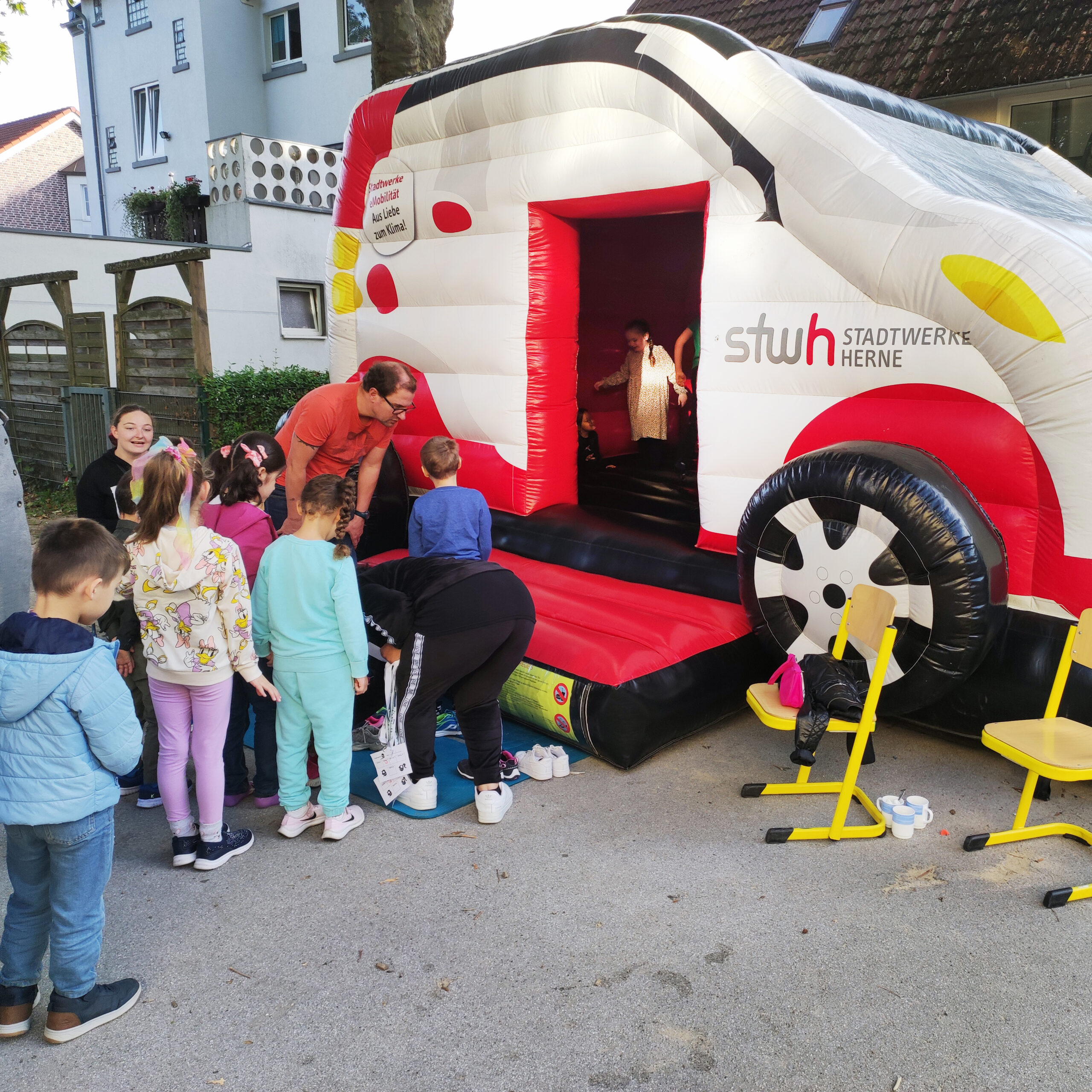 Allen Schüler*innen wurde gezeigt, welche Arten der Fortbewegung es neben dem Auto gibt. Gleichzeitig wurde probiert, wie eine Straße mit weniger beziehungsweise keinen Autos genutzt werden kann. Die Verkehrswacht war mit einem Bewegungs- und Fahrradparcours für die Schüler dabei. Auf der bemalten Straße das Maskottchen Edgar der europäischen Mobilitätswoche.