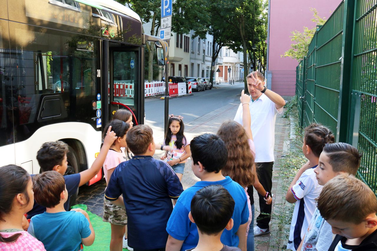 Um 10:00 Uhr fand ein Gespräch mit Vertretern der Presse statt. Angesprochen wurden Themen wie sicherer Schulweg, Gefahrenstellen rund um die Gallieo-Schule, mögliches Pilotprojekt „Schulstraßen“ in Herne, Fahren mit Bus und Bahn oder mit dem Rad sicher zur Schule.
