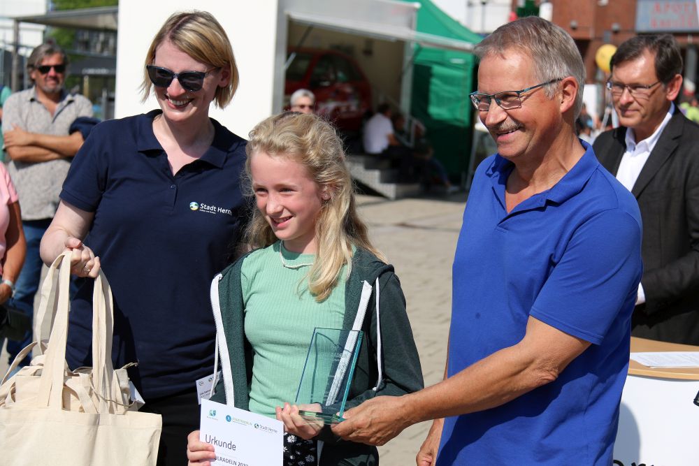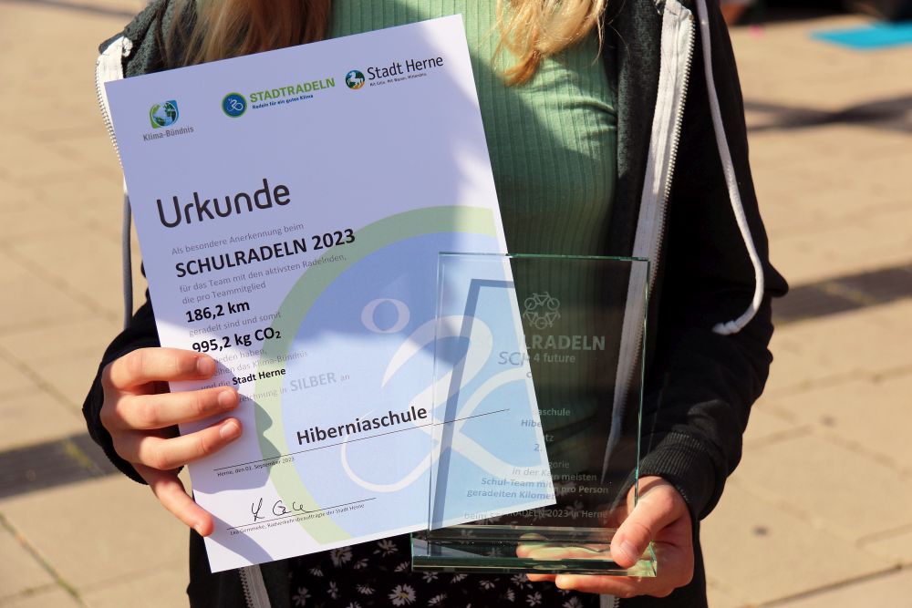 Preisverleihung vom Stadtradeln Beispiel Hiberniaschule